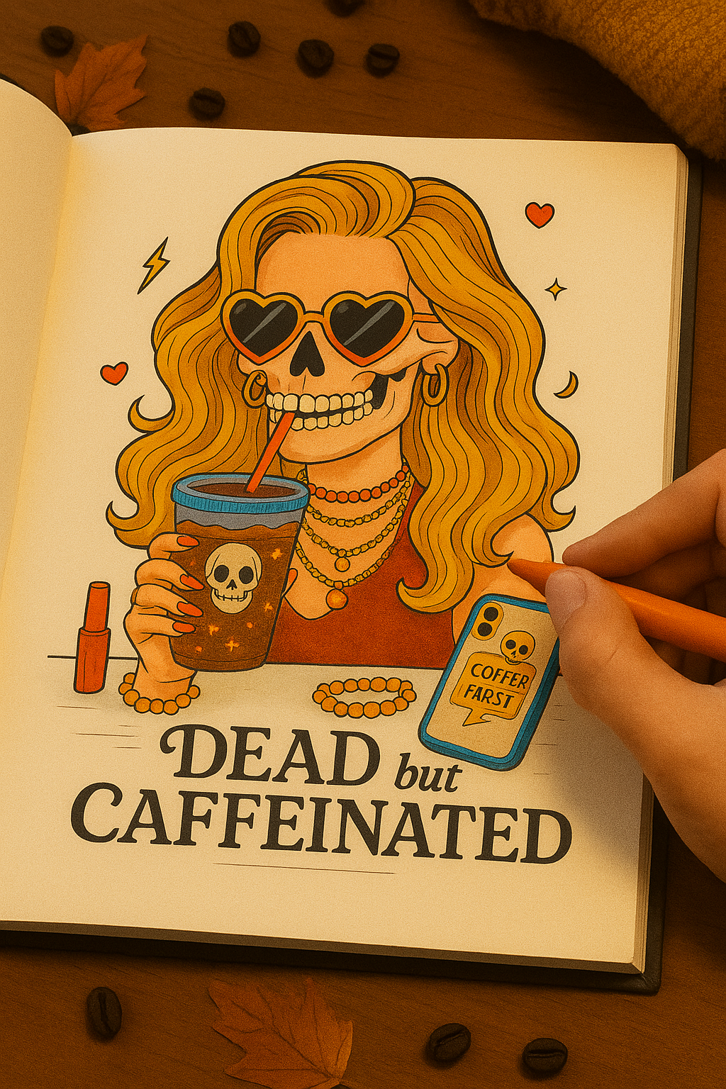 Our small design team is based in the Netherlands, and we proudly wear our inspirations on our sleeves. We’re lifelong fans of fantasy TV series like Xena: Warrior Princess and Buffy the Vampire Slayer, lovers of 90s nostalgia, and big believers in the comfort of cozy themes — think Halloween vibes, warm cups of coffee, and rainy afternoons with colored pencils.